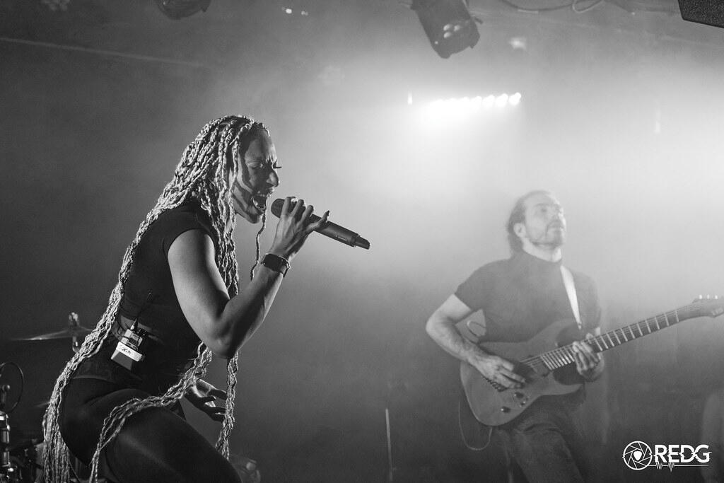 Following their acclaimed debut album Eclosion, known for its fusion of raw metal energy with refined orchestral textures, No Terror in The Bang released their second opus, Heal, in January 2024 (Klonosphere / Season of Mist). More direct, more visceral, this new release delivers powerful and emotionally charged tracks, shaped like self-contained cinematic worlds.Frontwoman Sofia masterfully embodies multiple personas, switching between clean vocals and harsh screams with striking emotional range. Each song reveals a distinct atmosphere—where modern metal meets the language of dark film scores, filled with suspense and climaxes.The band is led by Alexis Damien, known for his work with Pin-Up Went Down and Void Paradigm, and as Carnival in Coal’s drummer on their 2006 tour., along with Etienne Cochin (guitar), Clément Bernard (guitar), and Brice Bouchard (bass).Winners of the FAIR 2023, No Terror in The Bang has performed on numerous stages and festivals: Le Normandy (supporting Rise of the Northstar), Chien à Plumes, Chauffer dans la Noirceur, Rock in Évreux, among others. They’ve shared the bill with Mass Hysteria (Le 106), La Boule Noire, and were invited to the PowerProg Europe Festival (Netherlands).